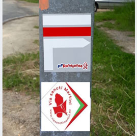 - Le balisage du chemin de saint Martin. Ce balisage est en cours. Vous ne le verrez donc pas encore tout au long du parcours. Lorsque vous êtes sur le GR, le plus simple est de suivre le balisage du GR.